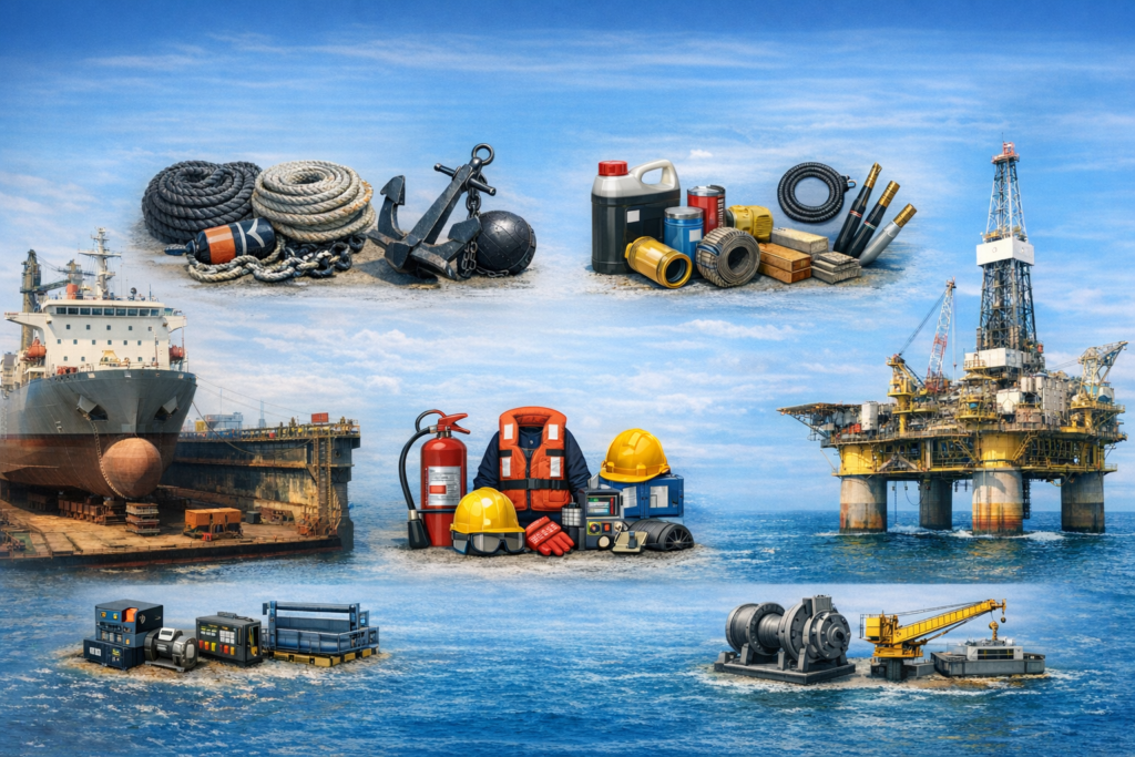 2. Engine Room Supplies: Lubricants, hydraulic hoses, gaskets, welding rods, technical consumables